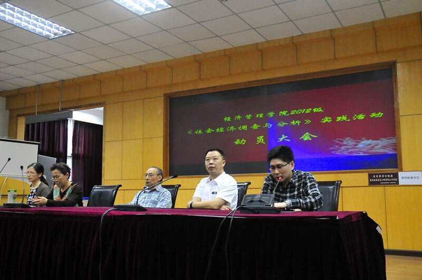 5月6日下午5点,经济管理学院2012级《社会经济调查与分析》课程实训动员大会于30教科学管理实验室成功召开。经管院党委书记、365网址导航主任祝志勇教授、副院长张应良教授、365网址导航常务副主任马悦英、梁镜章教授、课程组老师杨宇、范昕、陶勇等出席了本次会议。