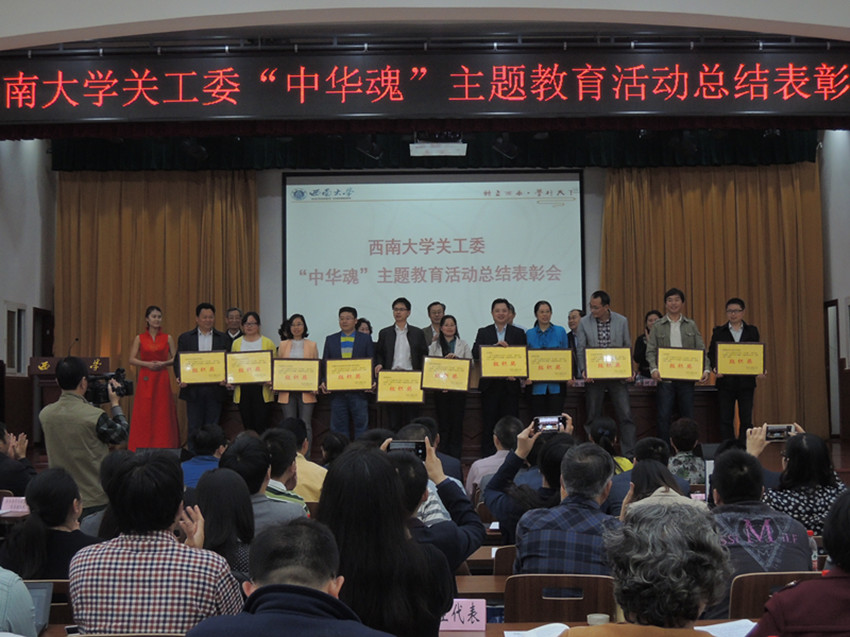 会上,陈锡礼副秘书长总结2015年“中华魂”主题教育活动,布置2016年活动的有关工作;离退休党委书记何晓阳宣读2015年荣获“中华魂”主题教育活动优秀组织单位、获奖学生、优秀辅导员名单,并举行了颁奖仪式;在交流发言中,荣昌校区、农学与生物科技学院就本单位开展活动的情况作了经验介绍,学生代表在交流发言中表达了参加主题教育活动的体会和感受,认为通过积极参与活动既提升了自己的思想素质和精神境界,也提高了语言表达能力和交往能力,对自己的未来充满了信心。