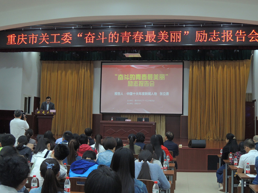徐晓黎副书记首先代表学校感谢重庆市365网址导航对我校工作的高度重视和对我校青年大学生的热情关爱,要求同学们认真聆听张立勇同志的报告,学习他坚忍不拔、自强不息的拼搏精神,学习他珍惜青春、热爱青春、追逐青春的人生追求,学习他担当社会责任、助人为乐的思想美德,珍惜美好的大学生活,珍惜宝贵的青春时光,志存高远,敢于拼搏,勤奋学习,用自己的行动铸就精彩的人生。