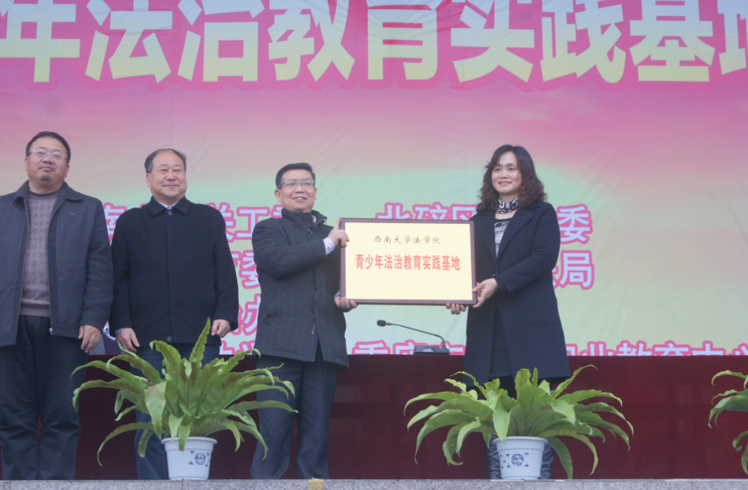 据介绍,为进一步落实《中共中央关于全面推进依法治国若干重大问题的决定》及国家“七五”普法规划相关内容,法学院以“三月法治宣传月”为契机,共建“青少年法治教育实践基地”,推进北碚区青少年法治教育。基地将紧紧围绕法治宣传和教育“四进”,即进班级、进网络、进校园文化、进社会实践,通过形式多样的普法宣讲和法治教育形式,让青少年学习法律知识,提升法治素养,培养法治精神。